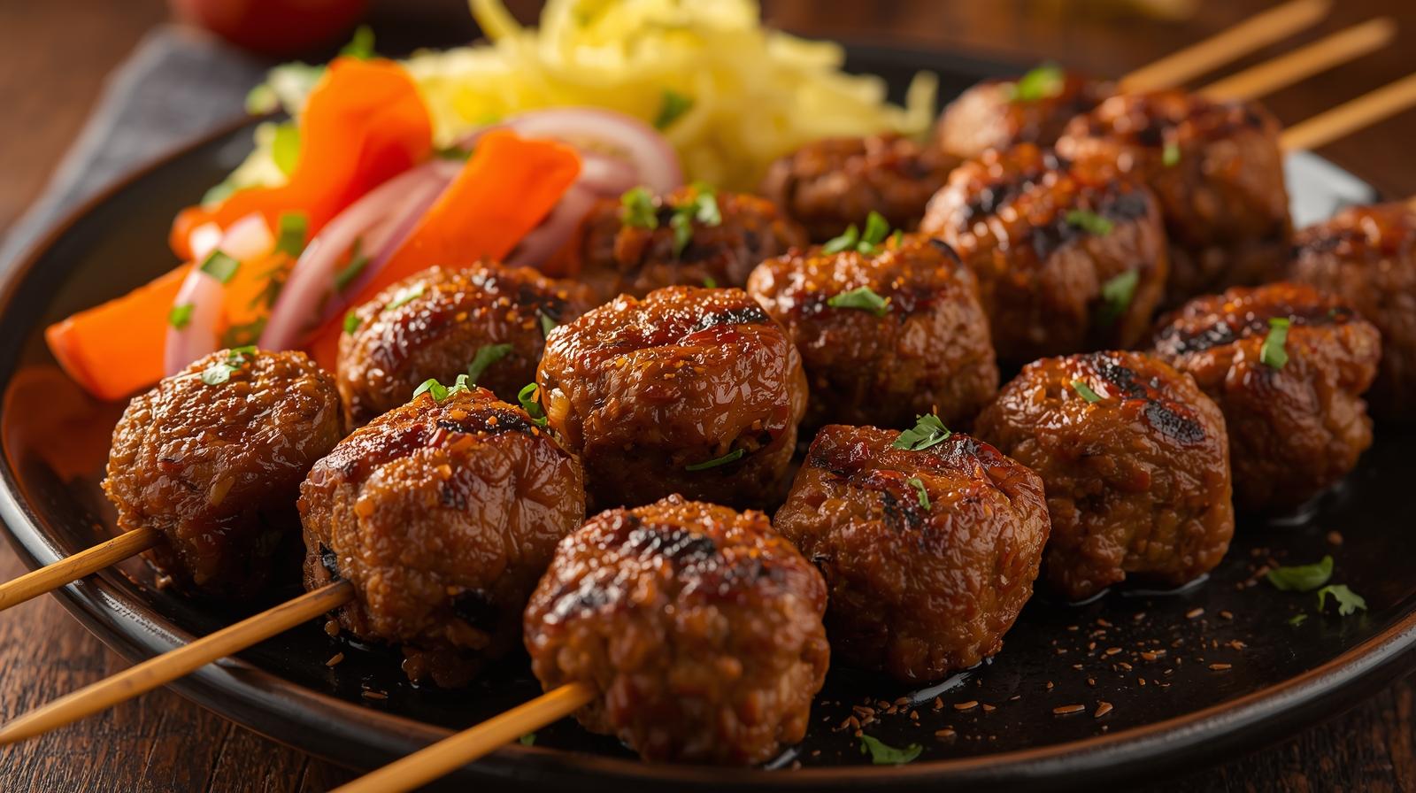 5 قطع كفتة مشوية على الفحم مع الخضار والبطاطس والعيش