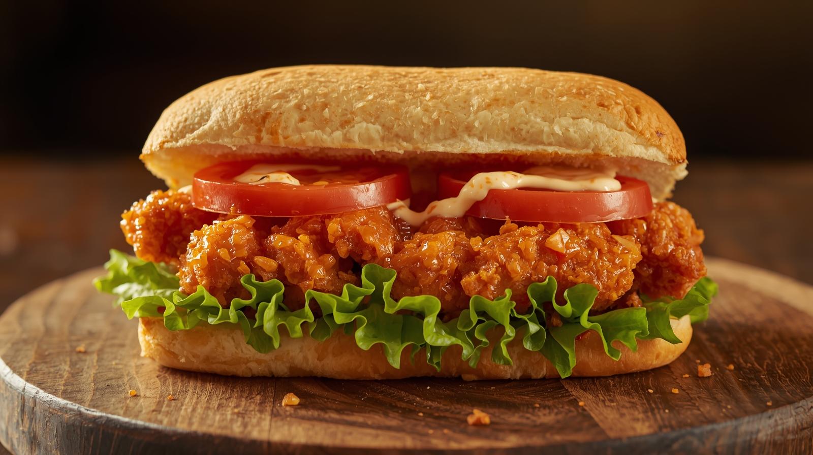 فرايد تشكن بالتتبيلة المميزة مع خس، جبنة، صوص رانش، كول سلو ومخلل